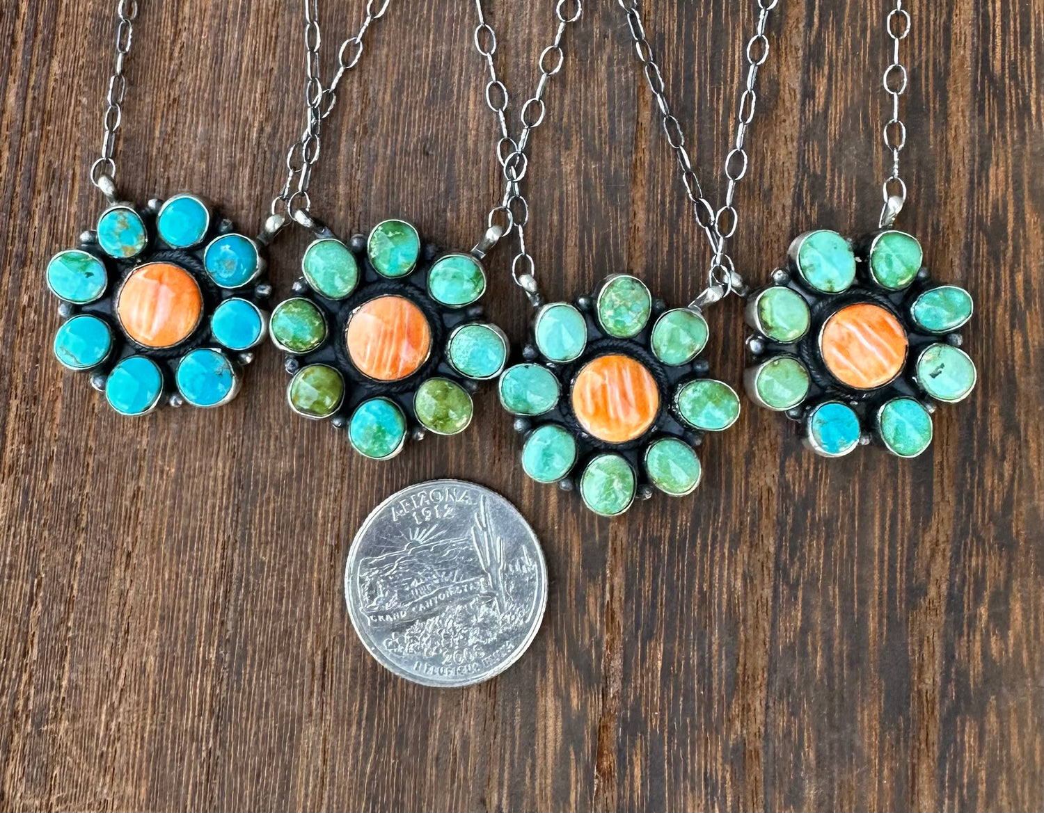 18” SONORAN GOLD TURQUOISE AND ORANGE SPINY OYSTER CLUSTER NECKLACE